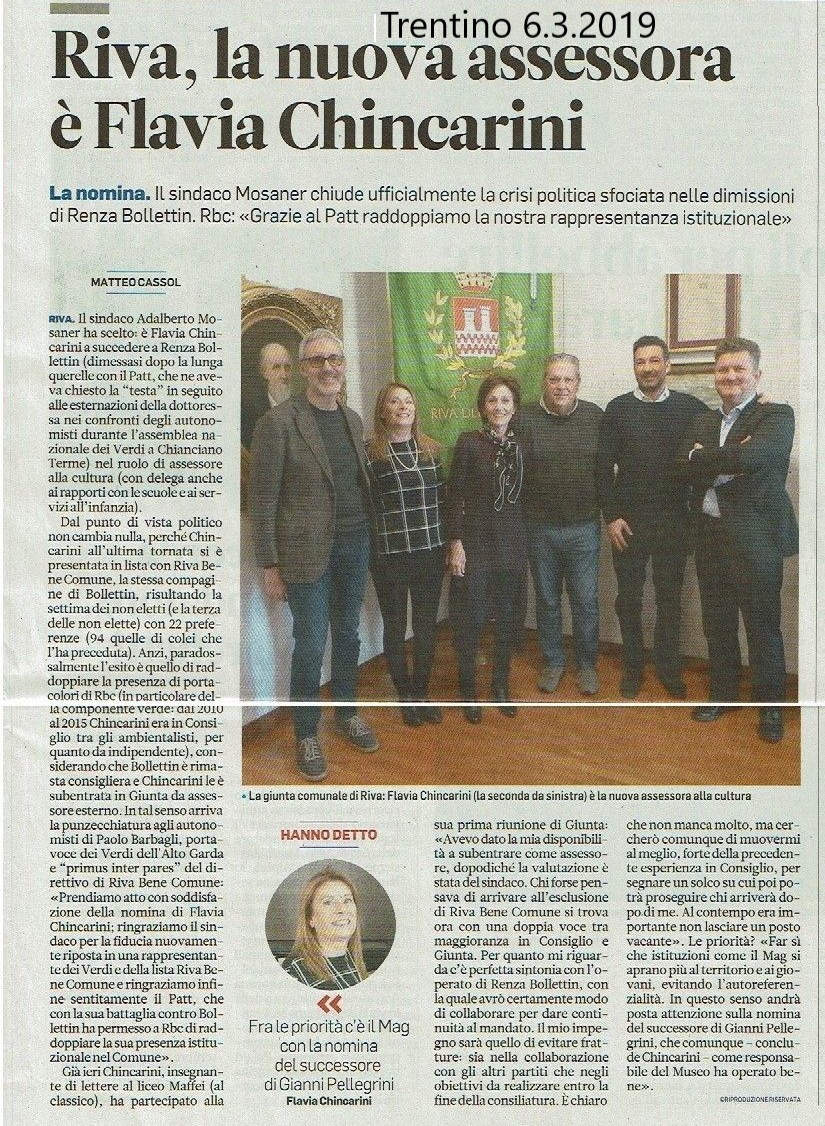 "Riva, la nuova assessora è Flavia Chincarini" - Trentino 6.3.2019