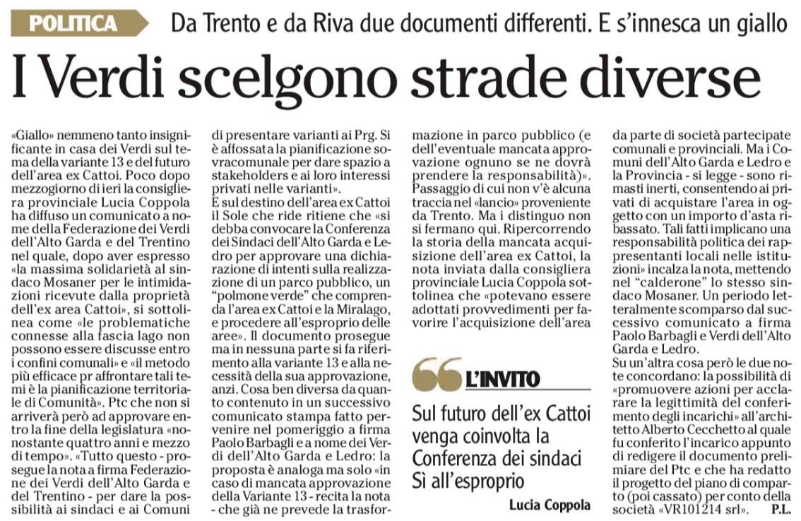"I Verdi scelgono strade diverse" - L'Adige 23.1.2020
