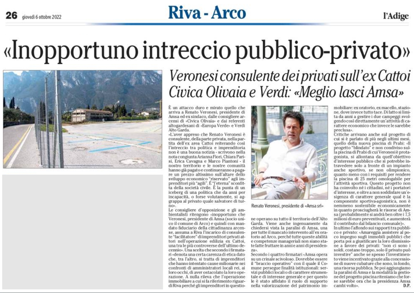 "No all'intreccio pubblico-privato" - L'Adige 6.10.2022