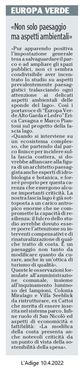 "Non solo paesaggio ma aspetti ambientali" - L'Adige 10.4.2022