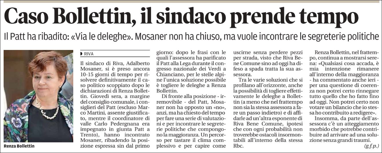 "Caso Bollettin, il sindaco prende tempo" - Trentino 22.12.2018