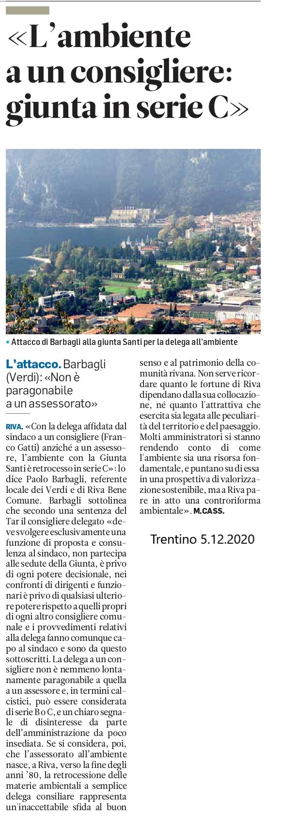 "L'ambiente a un consigliere: giunta in serie C" - Trentino 5.12.2020